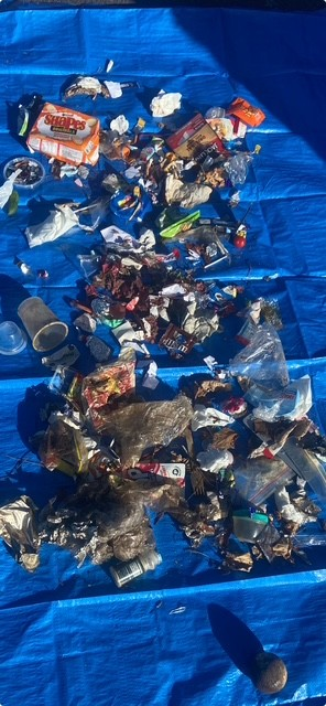 Collected from the old quad, new quad and indigenous garden, you can see plastic packaging, or parts of plastic packaging, is the main problem.