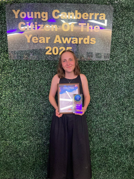 Last Friday, 7 November, the 2025 Sustainability Captain, Rebecca Price, was awarded Young Canberra Citizen of the Year in the Environment and Sustainability category.